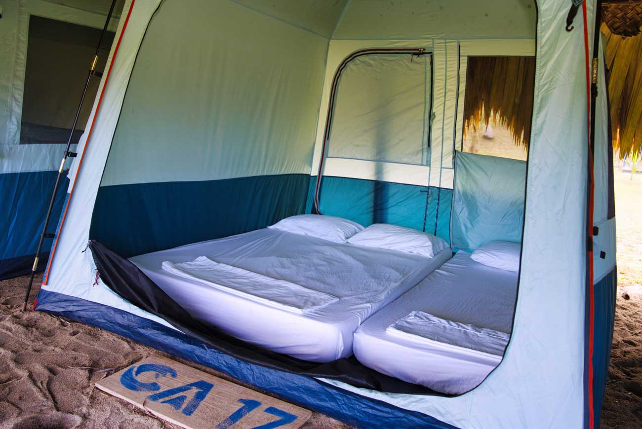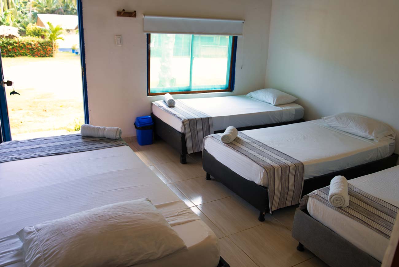 La experiencia de dormir frente al mar Tayrona con colchoneta, almohadas y sábana.